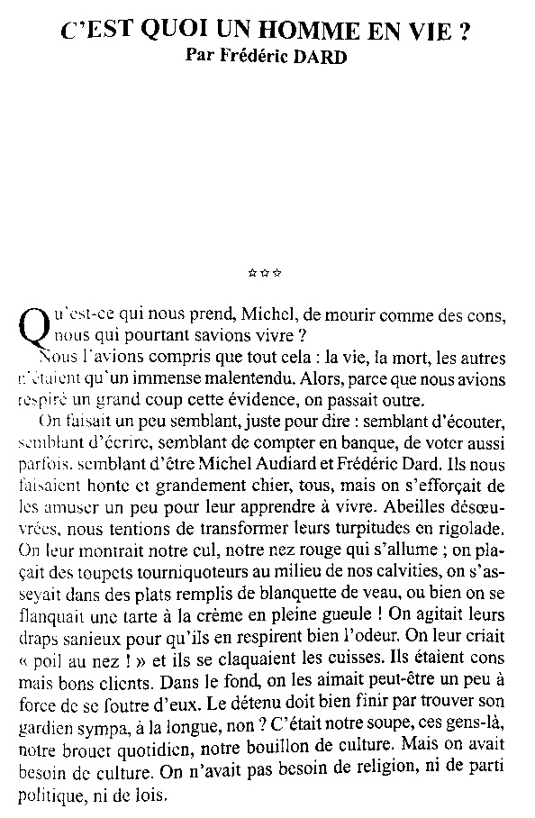Ce livre, présenté par René Château et qui fait partie de la Collection « La mémoire du cinéma français », contient un témoignage de Frédéric Dard sur Michel Audiard qui avait été publié précédemment dans Libération le 30 juillet 1985.