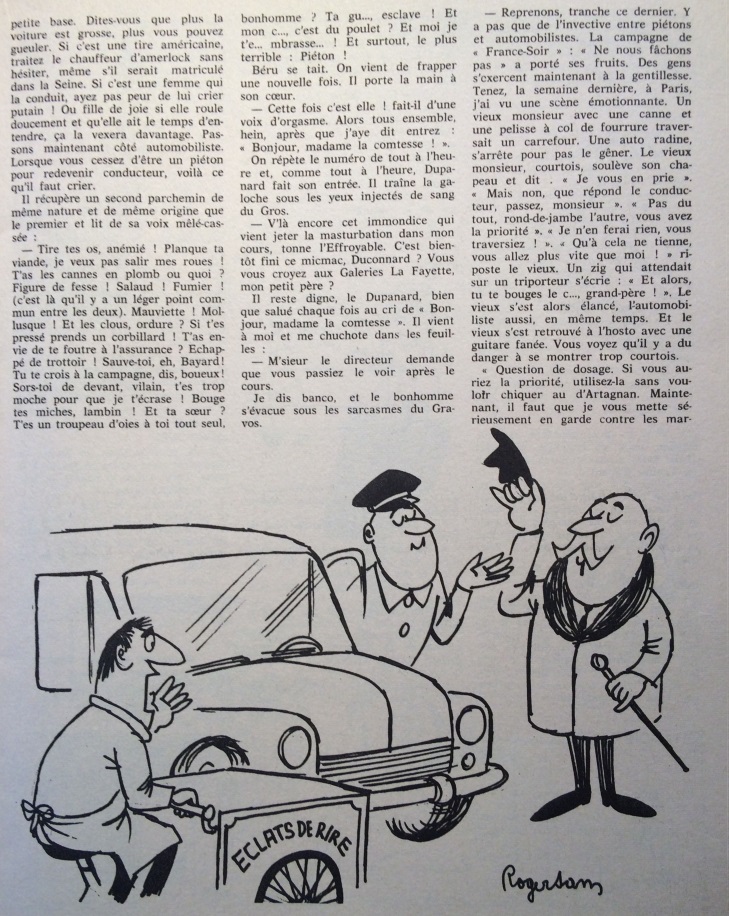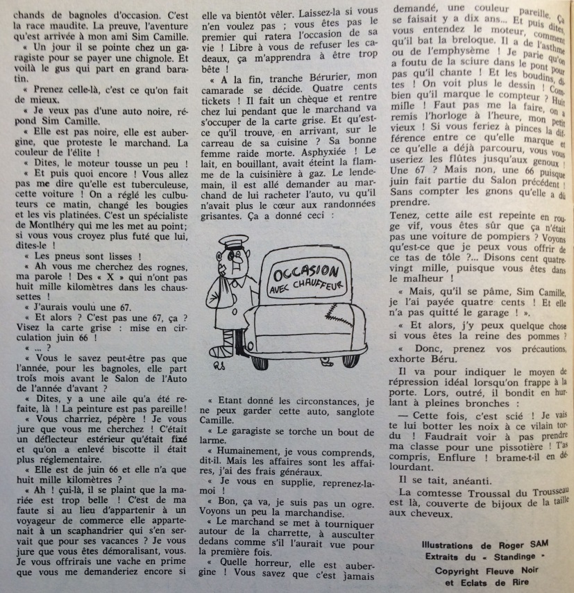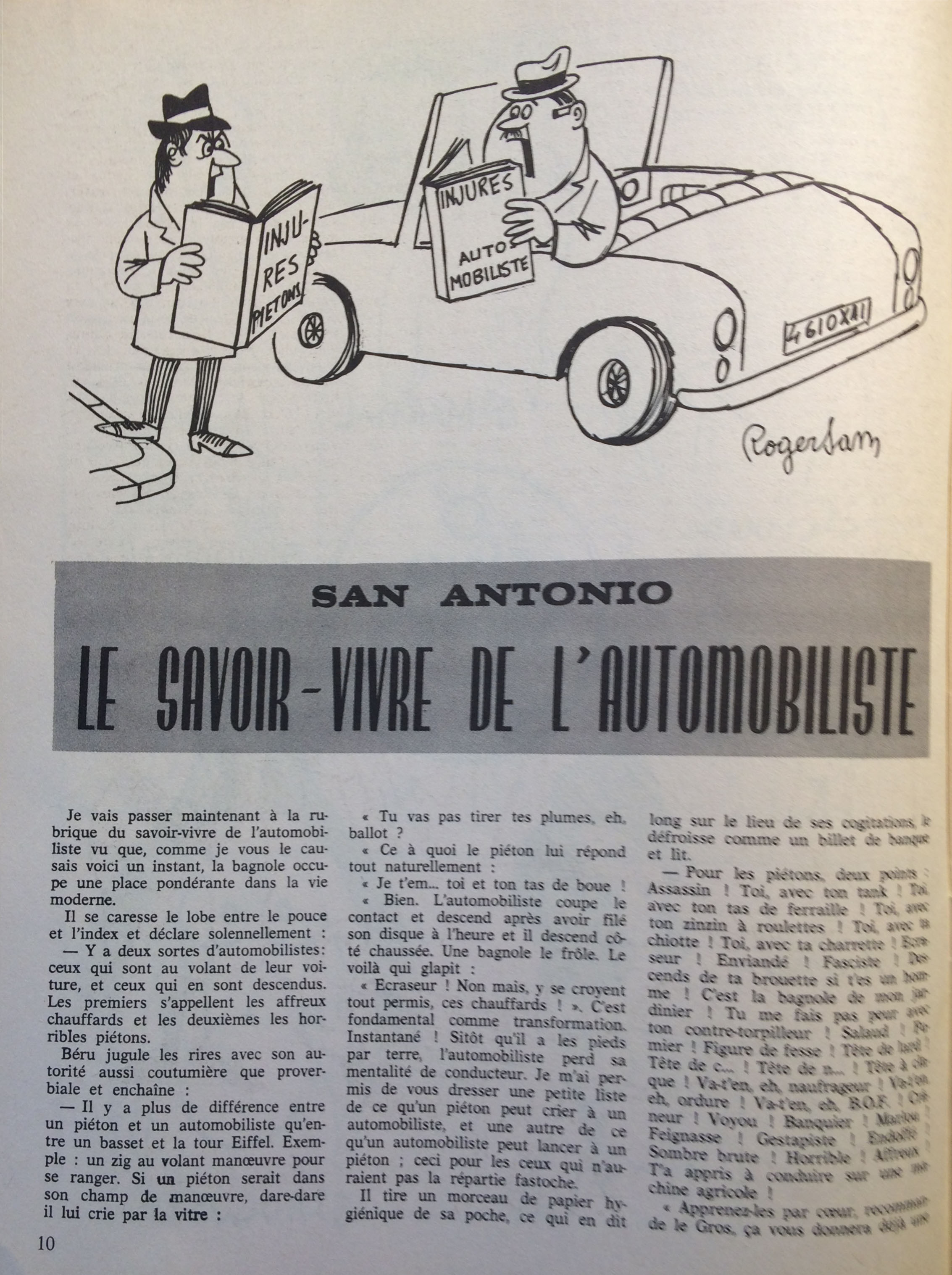 Ce numéro contient un article de 3 pages illustré par Roger Sam et signé San-Antonio qui s’intitule « Le savoir-vivre de l’automobiliste». Il s’agit d’un extrait du roman hors-série Le standinge selon Bérurier.