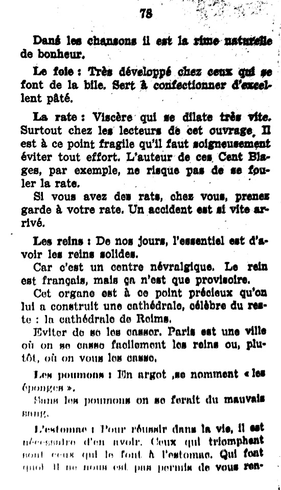 On trouve aussi dans cette revue la 2ème partie d’une rubrique intitulée Notre Encyclopédie Médicale dans laquelle on découvre un texte humoristique sur les organes du tronc humain qui a pour titre « L’homme ! c’est un cornu » rédigée par le docteur Alexis Pinoculitch. La 1ère partie de cette encyclopédie a paru dans le Cent Blagues n°9.