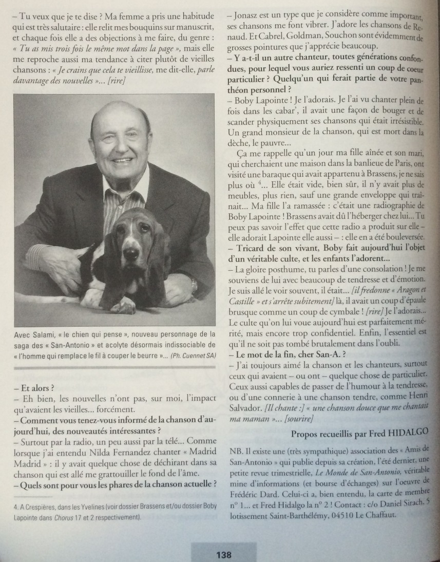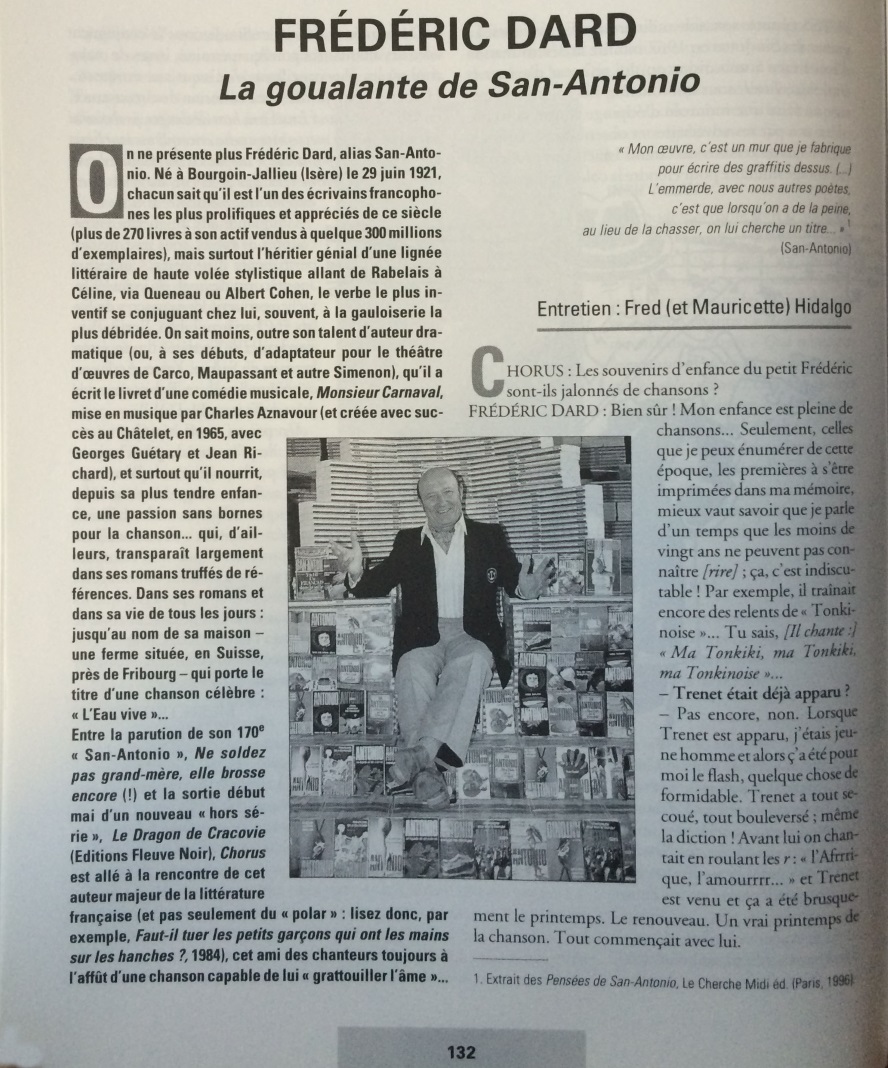Ce numéro contient une longue interview de Frédéric Dard réalisée par Fred et Mauricette Hidalgo : La goualante de San-Antonio.