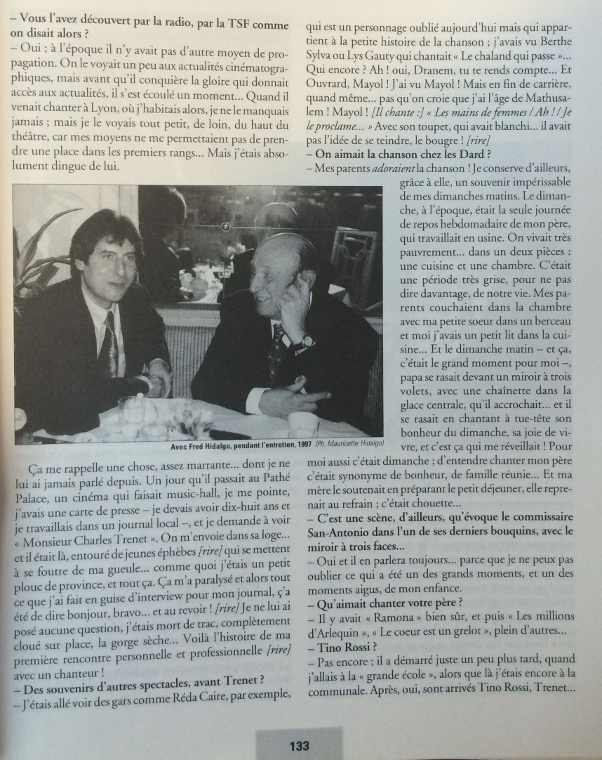 – le flash pour Charles Trénet qu’il voulait interviewer alors qu’il travaillait comme journaliste pour Le Mois à Lyon. Frédéric était tellement impressionné que l’interview s’est résumée à Bonjour, bravo et au revoir !