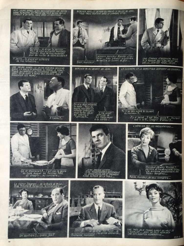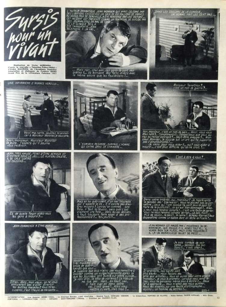Ce numéro contient le début d’un roman-photos en trois épisodes du film Sursis pour un vivant, un film de Victor Meranda dont le scénario et les dialogues ont été écrits par Frédéric Dard.