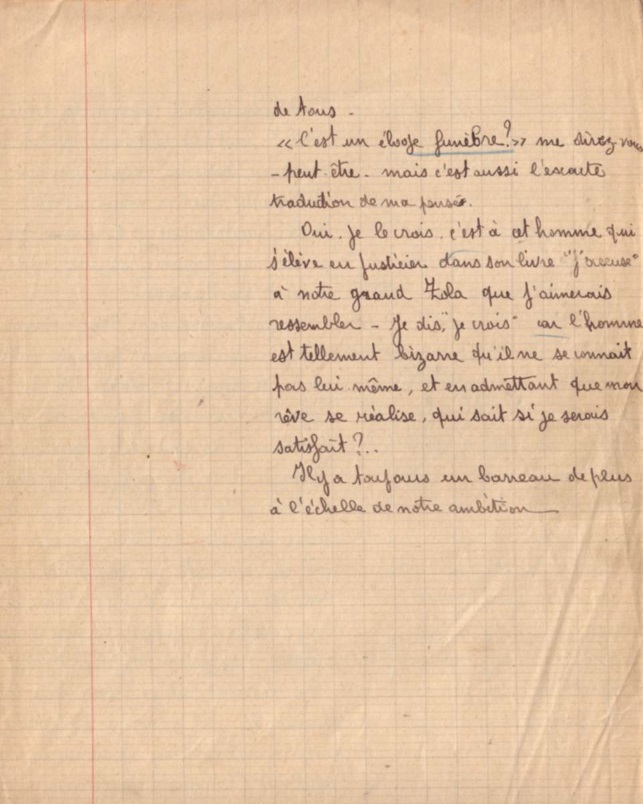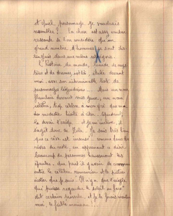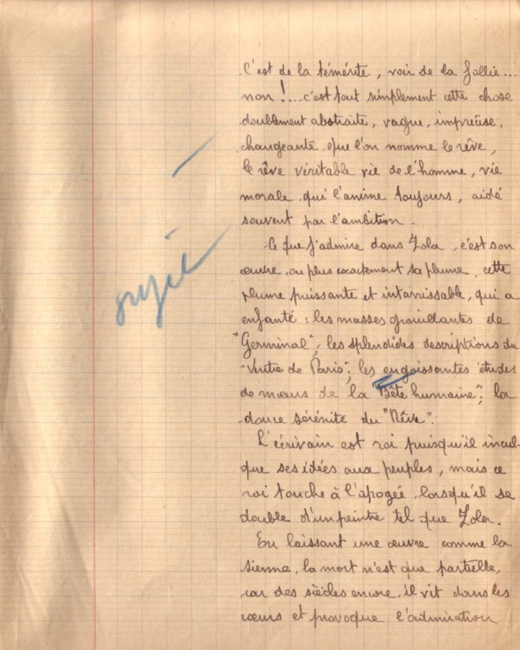 Voici la copie de composition française qu’avait rendue Frédéric Dard à presque 17 ans lorsqu’il était au Lycée de la Martinière.