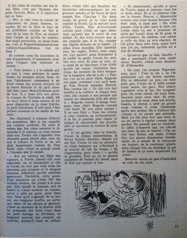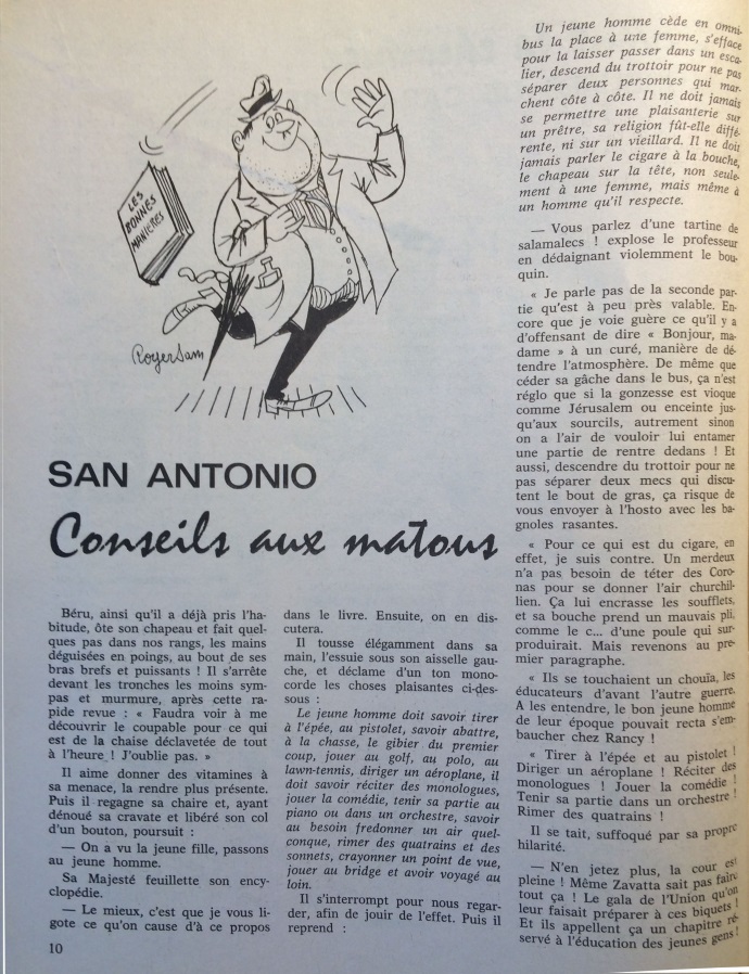 Ce numéro contient un article de 4 pages illustré par Roger Sam et signé San-Antonio qui s’intitule « Conseils aux matous ». Il s’agit d’un extrait du roman hors-série Le standinge selon Bérurier.