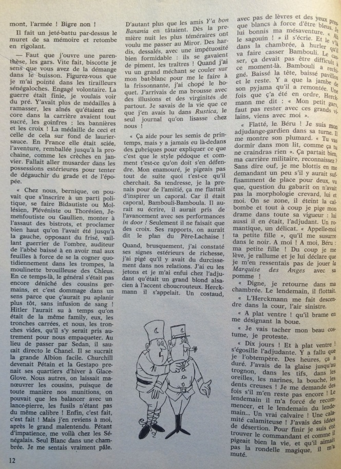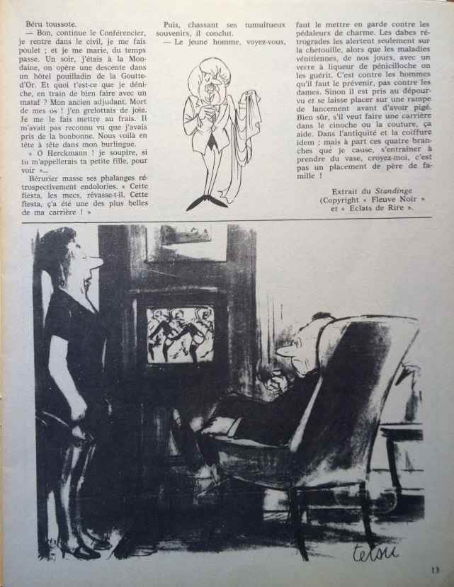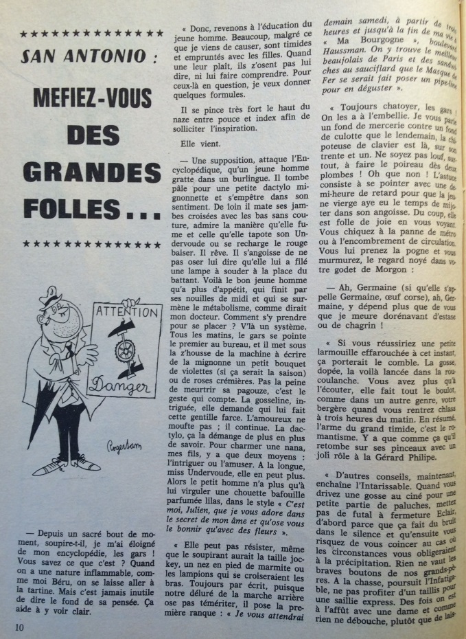 Ce numéro contient un article de 4 pages illustré par Roger Sam et signé San-Antonio qui s’intitule « Méfiez-vous… des grandes folles ». Il s’agit d’un extrait du roman hors-série Le standinge selon Bérurier.