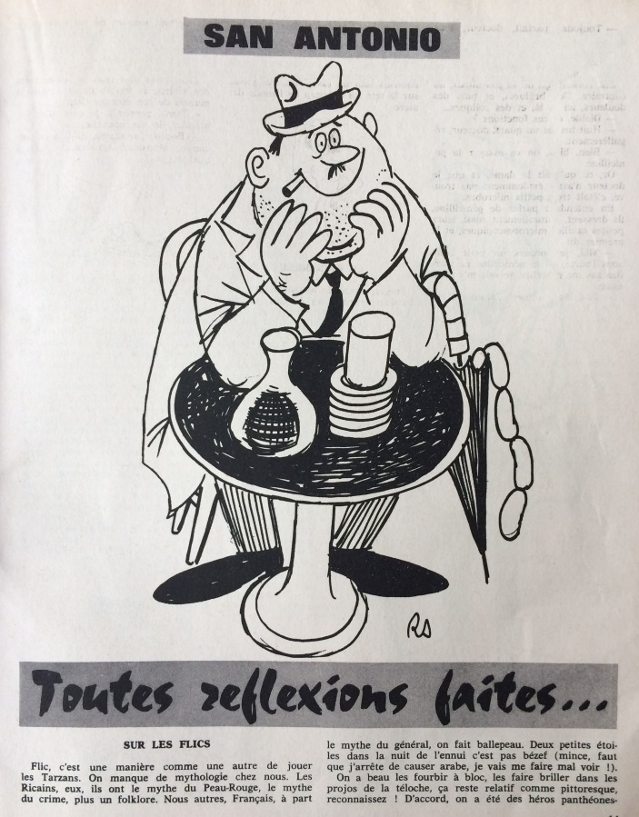 Ce numéro contient un article de 2 pages illustré par Roger Sam et signé San-Antonio qui s’intitule « Toutes réflexions faites…». Il s’agit d’un extrait du roman hors-série Le standinge selon Bérurier.