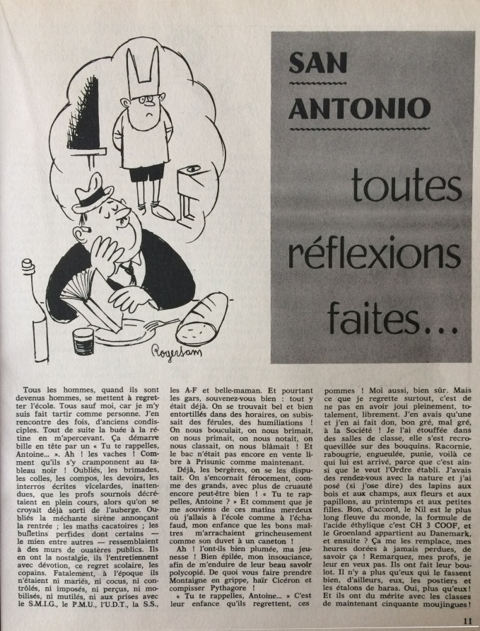 Ce numéro contient un article de 2 pages illustré par Roger Sam et signé San-Antonio qui s’intitule « Toutes réflexions faites…». Il s’agit d’un extrait du roman hors-série Le standinge selon Bérurier.