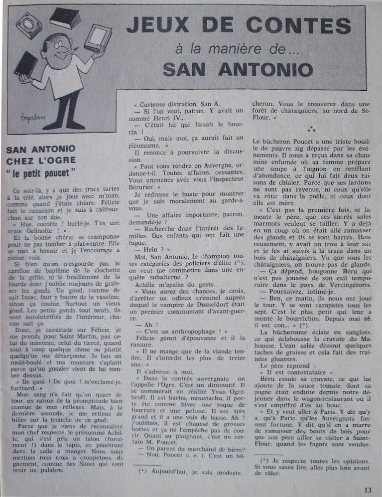 Ce numéro contient un texte de Dominique Egly intitulé « San-Antonio chez l’ogre « le petit poucet » » dans la rubrique Jeux de contes… à la manière de San-Antonio.