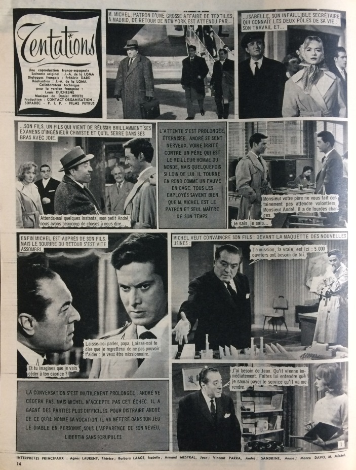 On trouvera aussi un roman-photos de 8 pages du film Tentations dont le scénario et les dialogues ont été écrits par Frédéric Dard et José Antonio de la Loma, réalisateur du film.