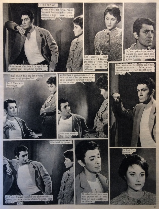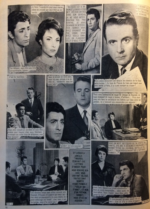 Ce numéro contient sur 3 pages la 3ème partie du roman-photos du film Préméditation sorti le 8 avril 1960 et réalisé par André Berthomieu d’après le roman « Toi qui vivais » de Frédéric Dard.