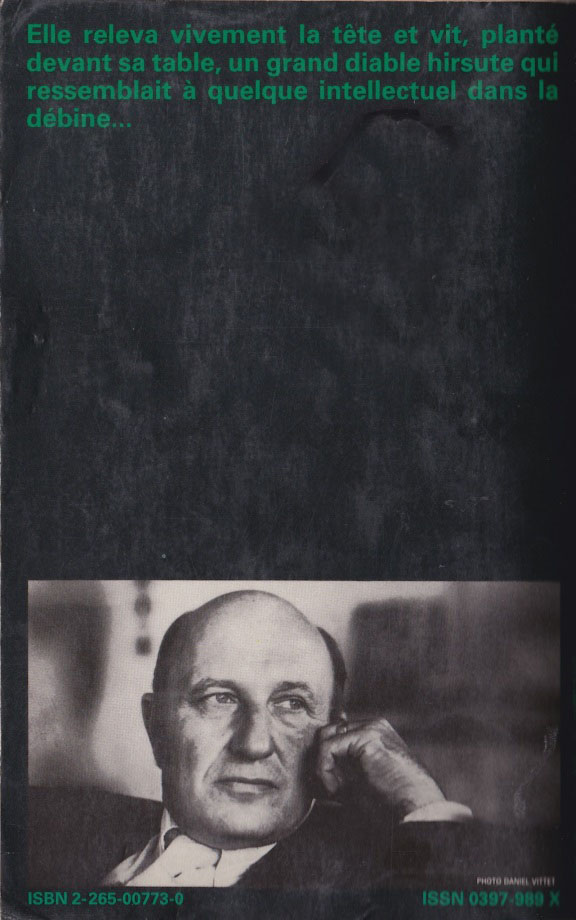 Sur les rabats de la belle couverture cartonnée couleur argent brillante, on trouve une photo de Frédéric Dard ainsi que des critiques sur lui publiées dans Le Monde, Les Nouvelles Littéraires, Le Dauphiné Libéré, Réalités et l’Illustré (journal suisse)