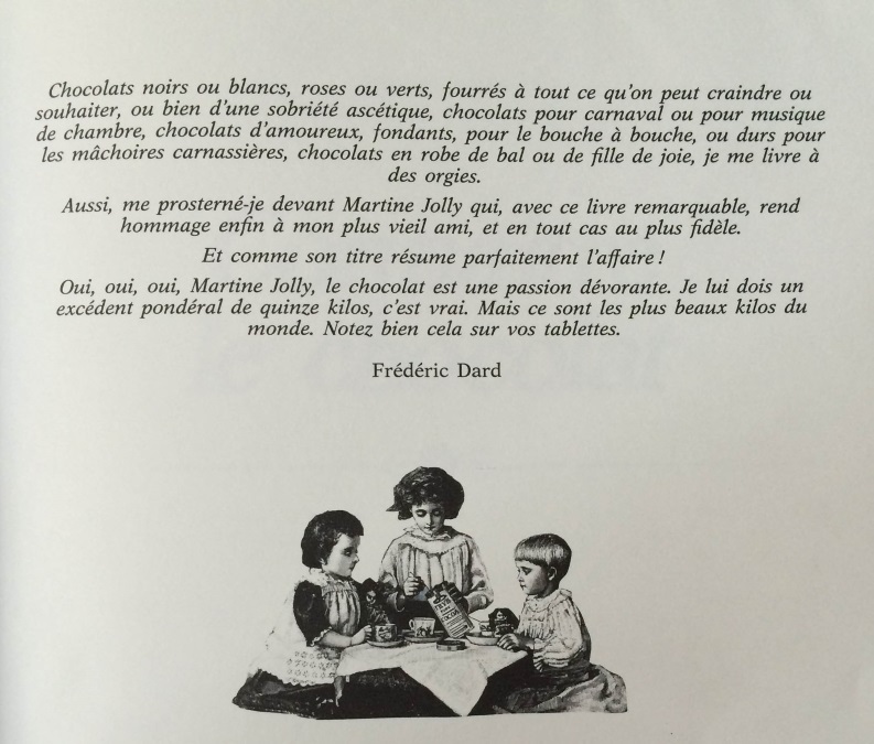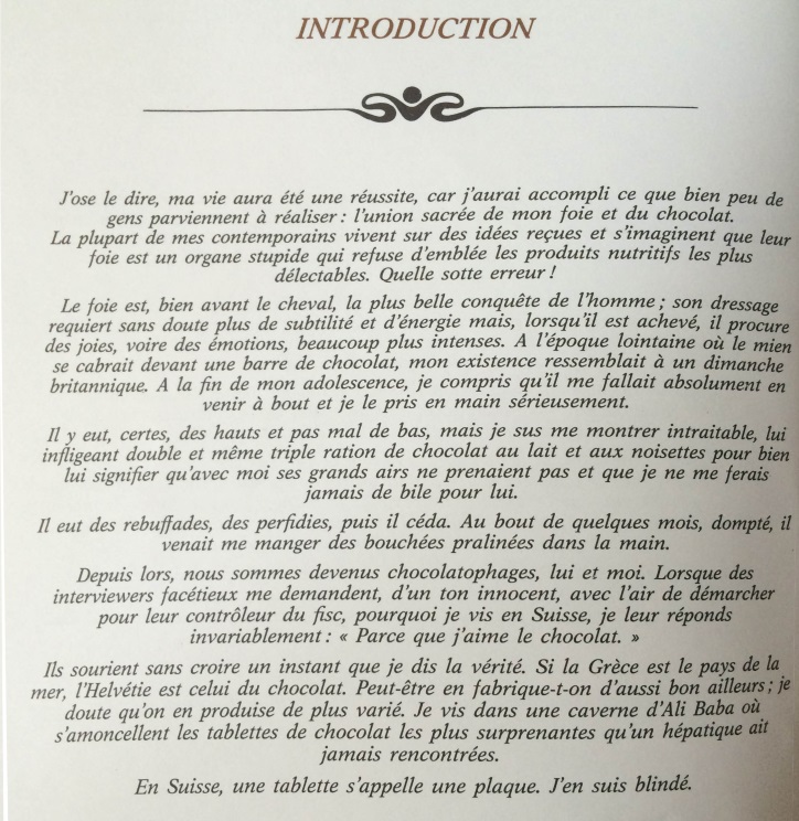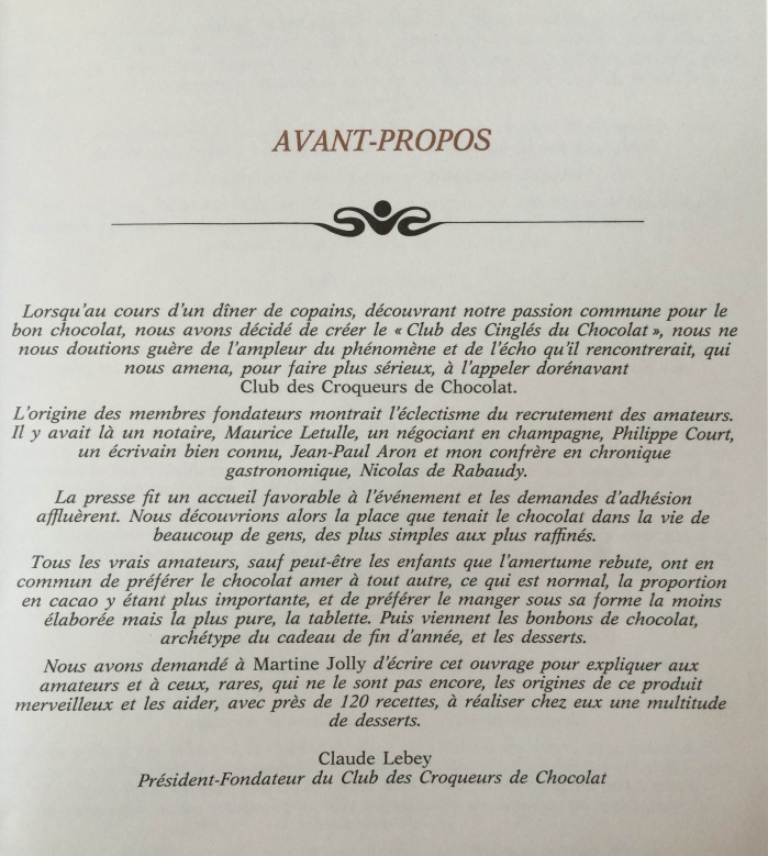 Il contient un avant-propos de Claude Lebey, Président-Fondateur du Club des Croqueurs de Chocolat ainsi qu’ une introduction en guise de préface de Frédéric Dard.