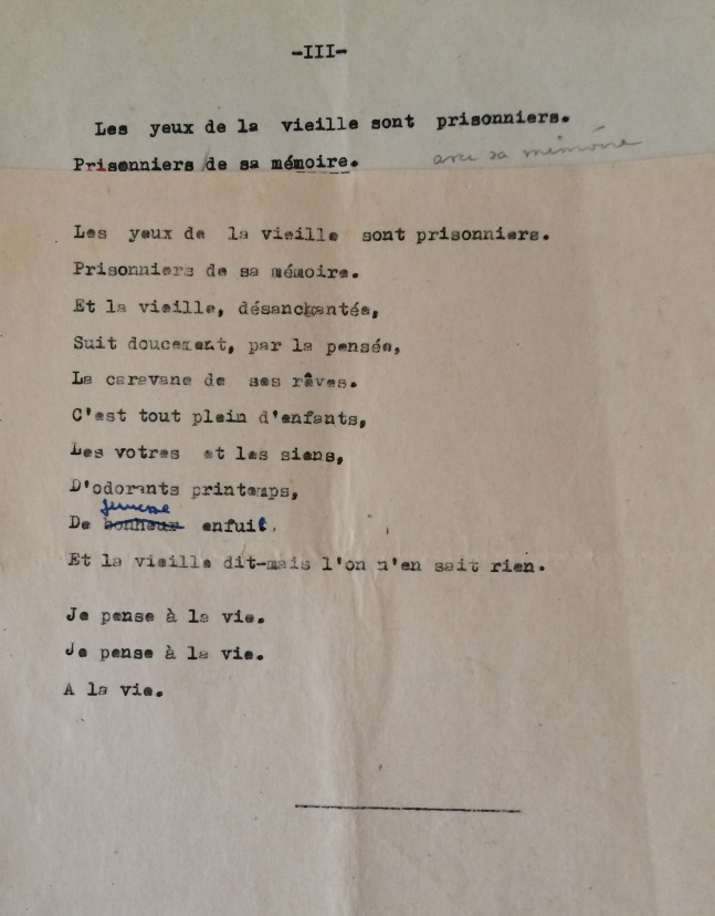 Vous êtes ici : Accueil » Objets » Objets divers » Poèmes » Leurs yeux – tapuscrit et manuscrit
