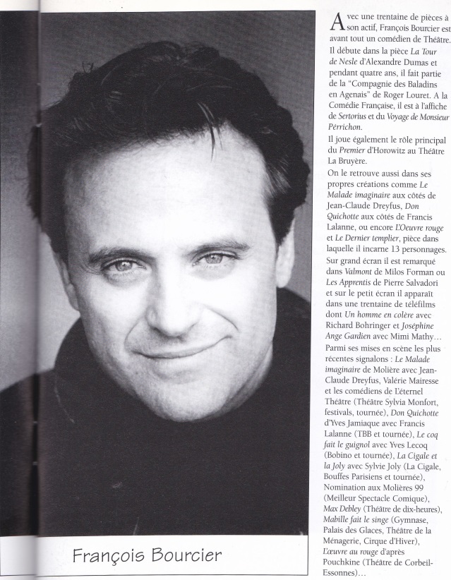 – des textes de présentation de François Bourcier(ci-dessus), Maxence Mailfort (acteur), Valérie Bourcier et Sylvie Leriche qui ont joué en alternance avec Maxence Mailfort et Bernard Mabille.