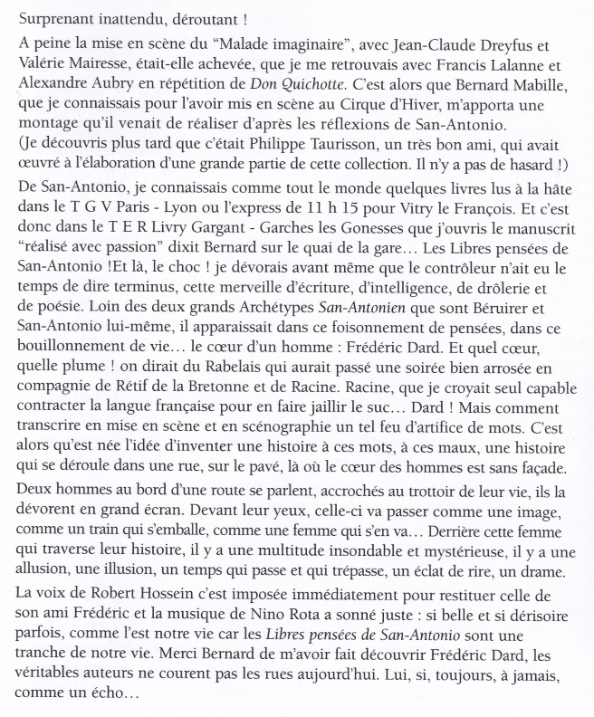 – un texte de François Bourcier (le metteur en scène) et un de Bernard Mabille (adaptateur et acteur)