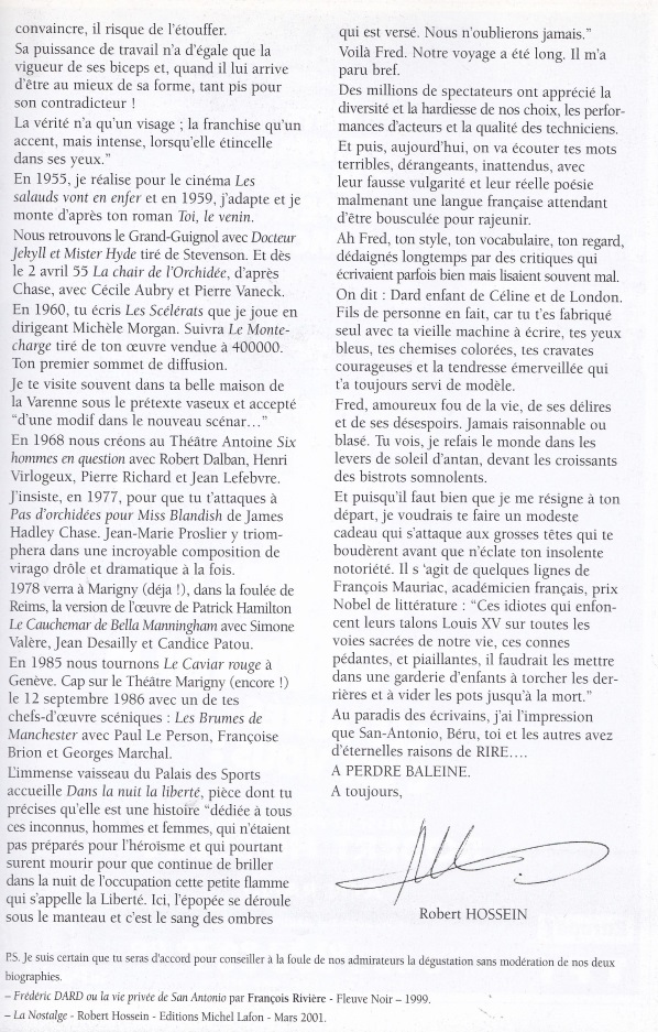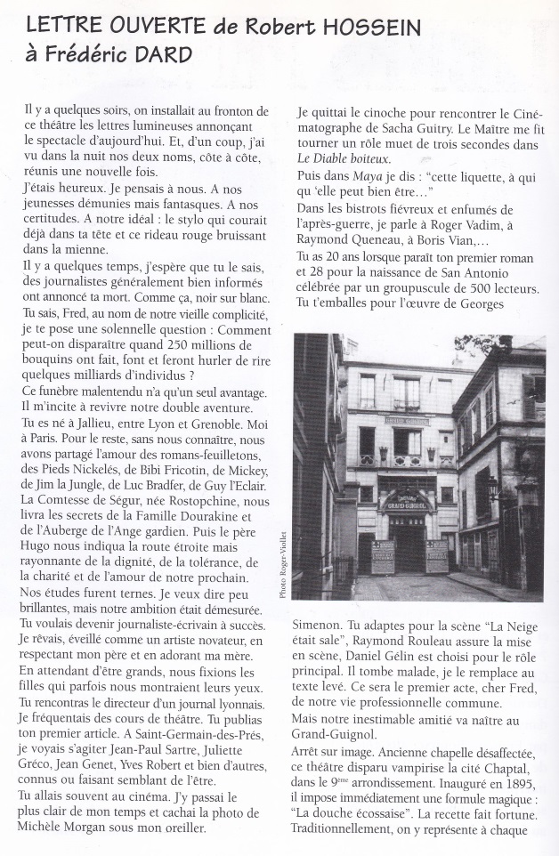– une très belle lettre ouverte de Robert Hossein à Frédéric Dard