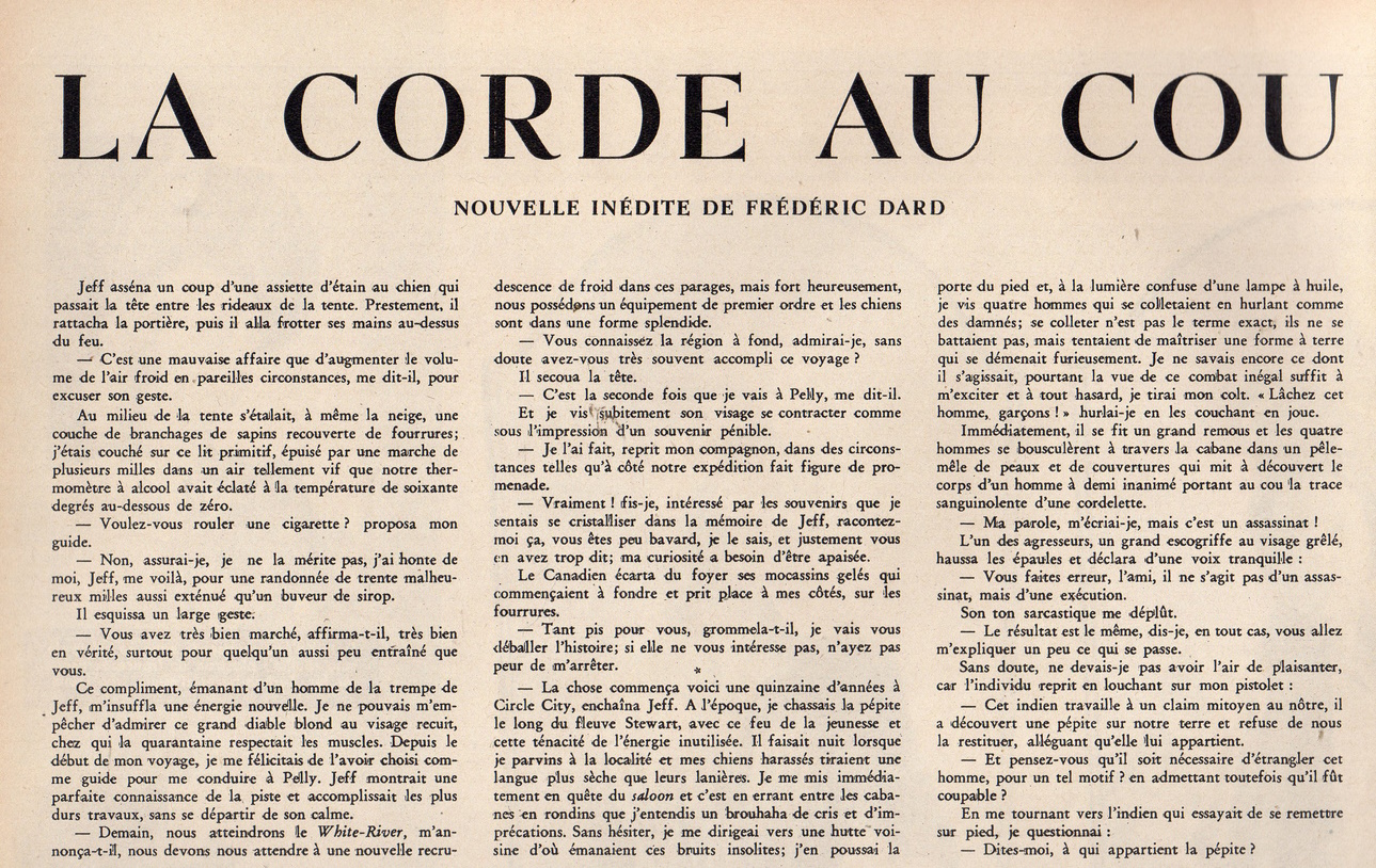 On trouve dans cet hebdomadaire suisse une nouvelle inédite de Frédéric Dard qui a pour titre La corde au cou.