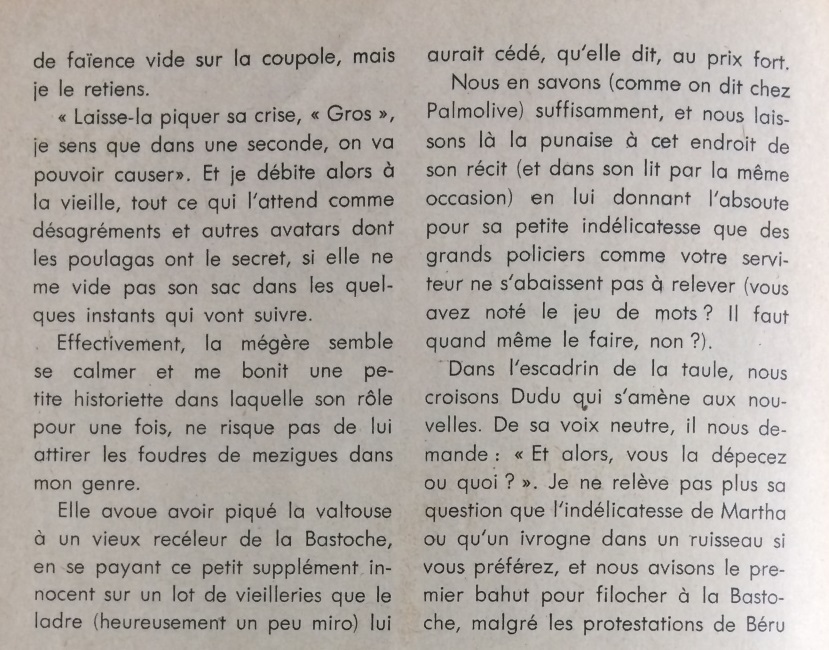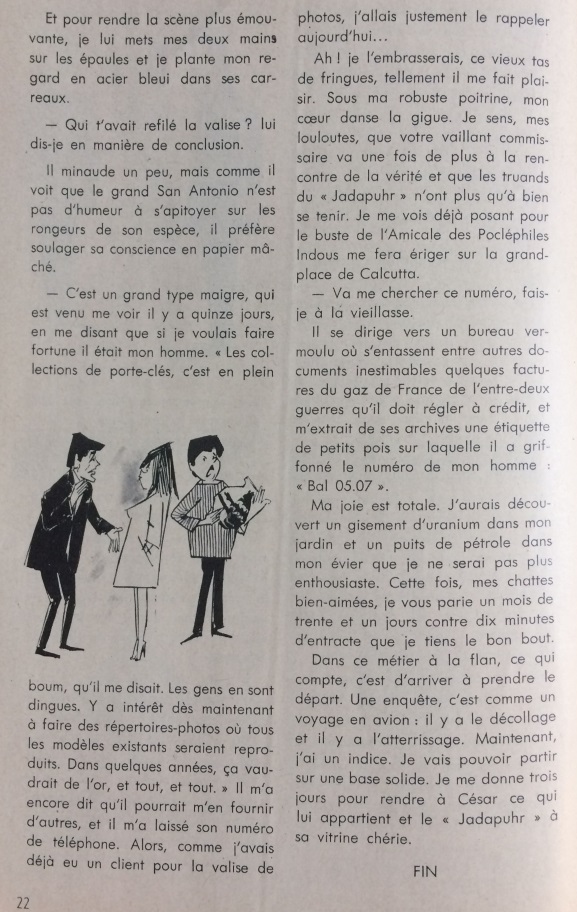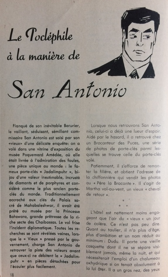 Ce numéro contient un texte de 5 pages intitulé « Le Pocléphile à la manière de San Antonio » non signé, mais il est certain que ce texte n’a pas écrit Frédéric Dard. Ce texte s’inspire fortement du chapitre V du roman de San-Antonio Des gueules d’enterrement paru en 1957.
