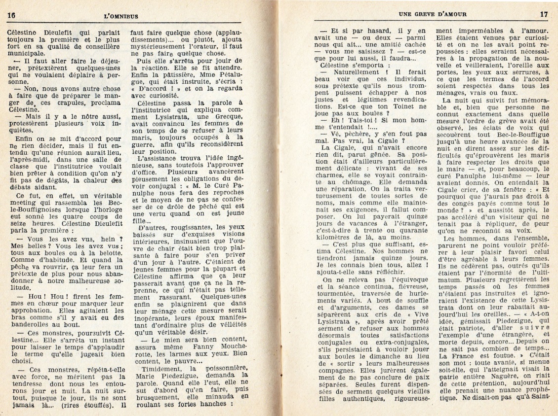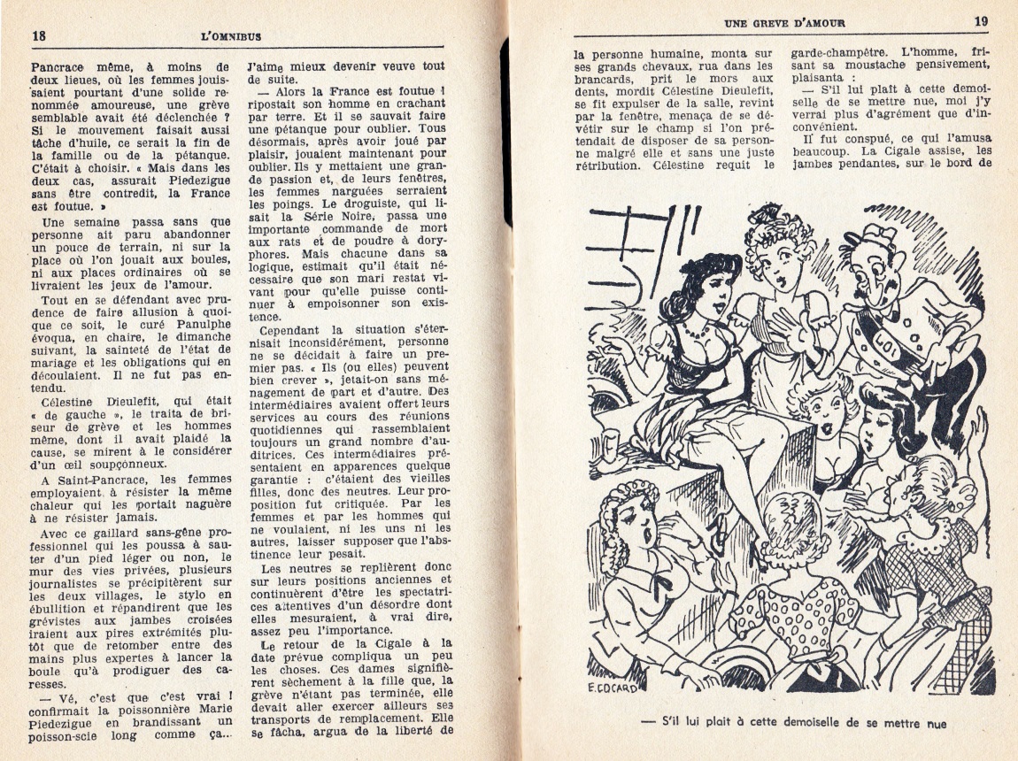 – Une grève d’amour à Bec-le-Bouffigue signé Sydeney, pseudonyme non reconnu de Frédéric Dard (voir le texte complet ci-dessous).