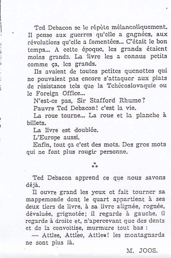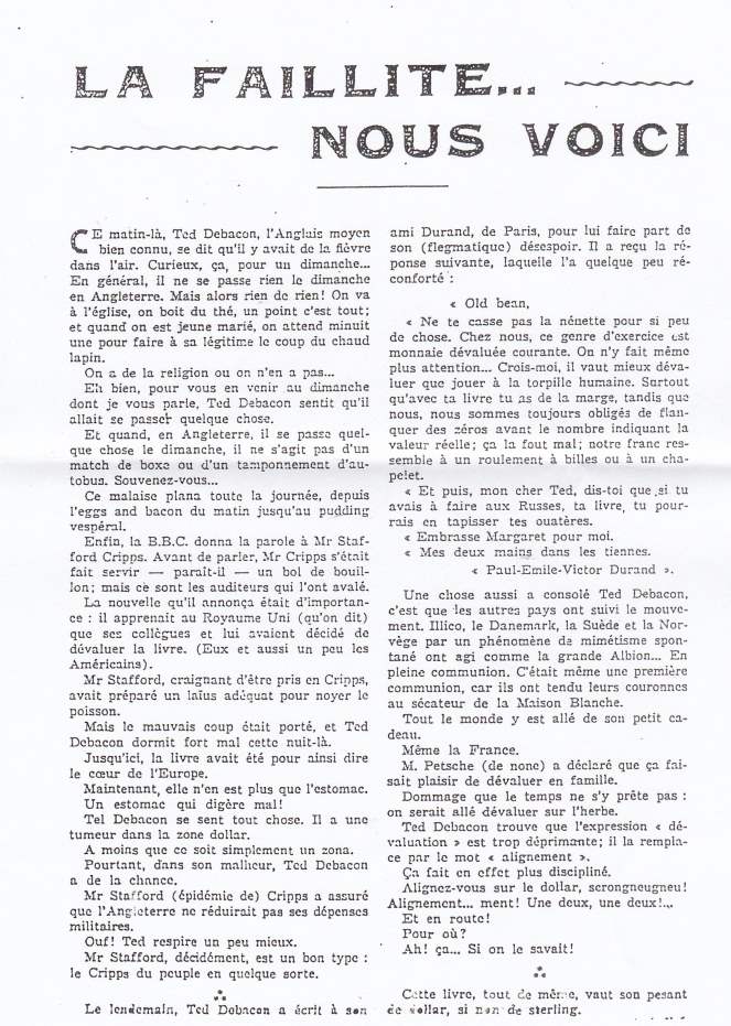 – La Faillite, nous voici, texte signé M Joos, pseudonyme reconnu de Frédéric Dard. Frédéric Dard, à qui on avait soumis ce texte sans la signature en 1999, ne l’a pas reconnu, mais je pense néanmoins que ce texte est bien de lui.
