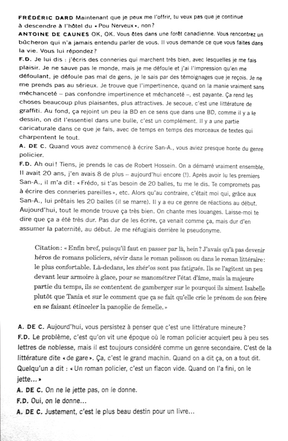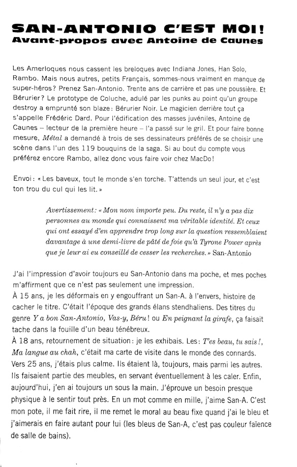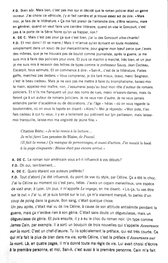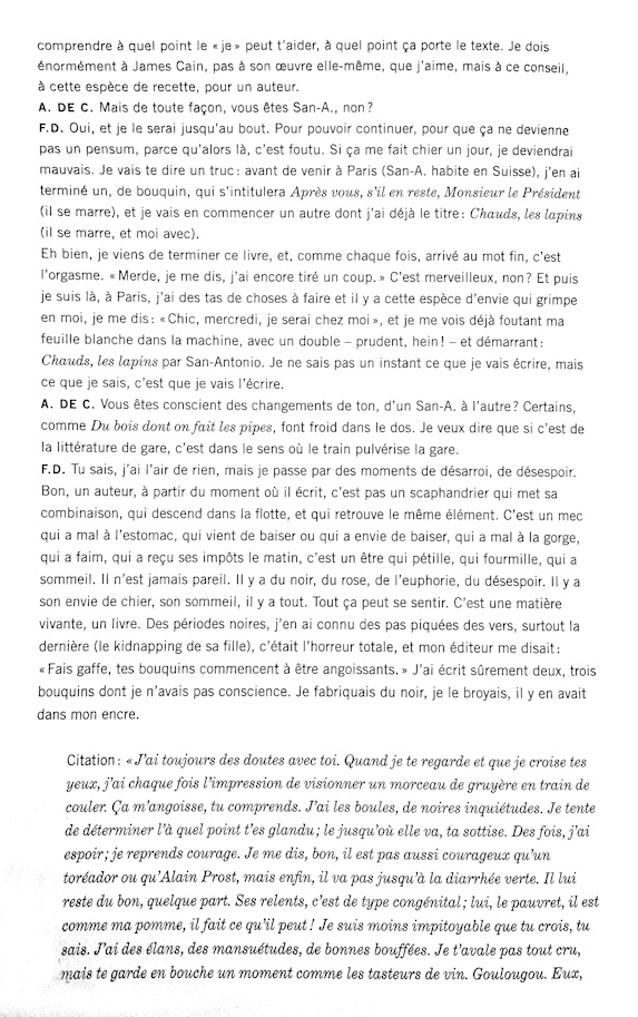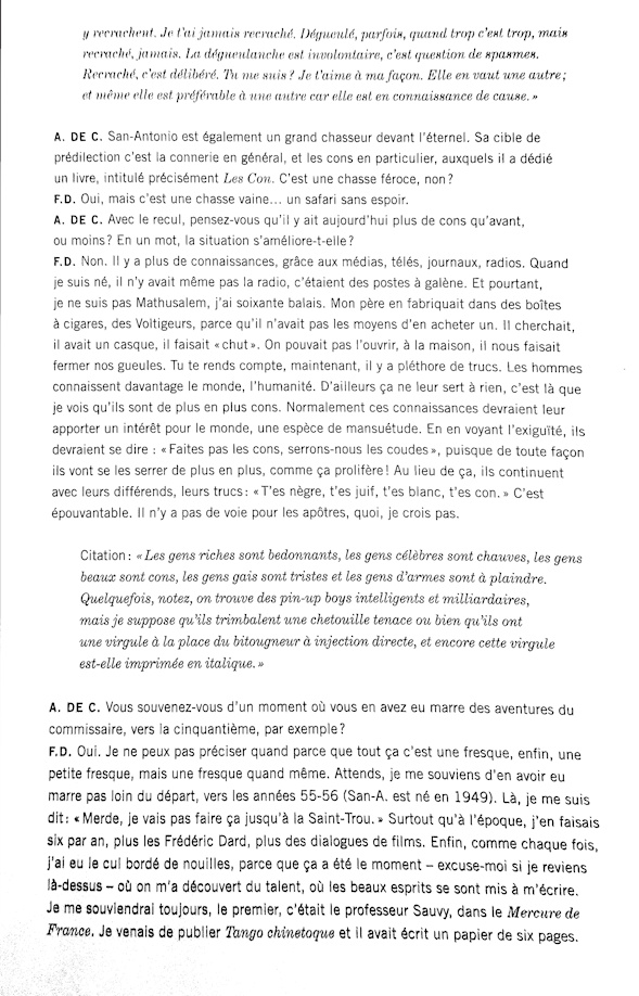 On retrouve l’intégralité de cet entretien dans la préface du livre « San-Antonio » de Boucq et Dard.