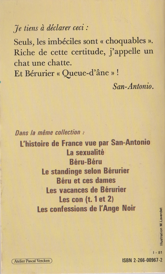Ce roman de 404 pages de format 15,5 X 24 est un monologue de Bérurier qui raconte sa vie sexuelle.