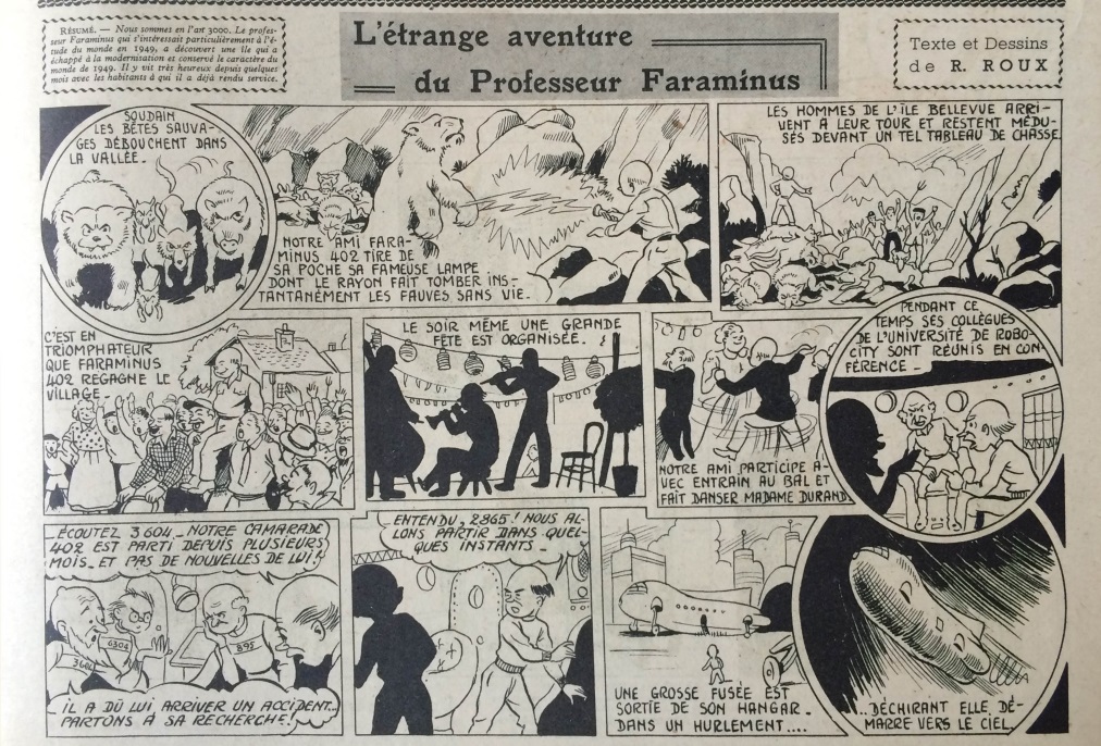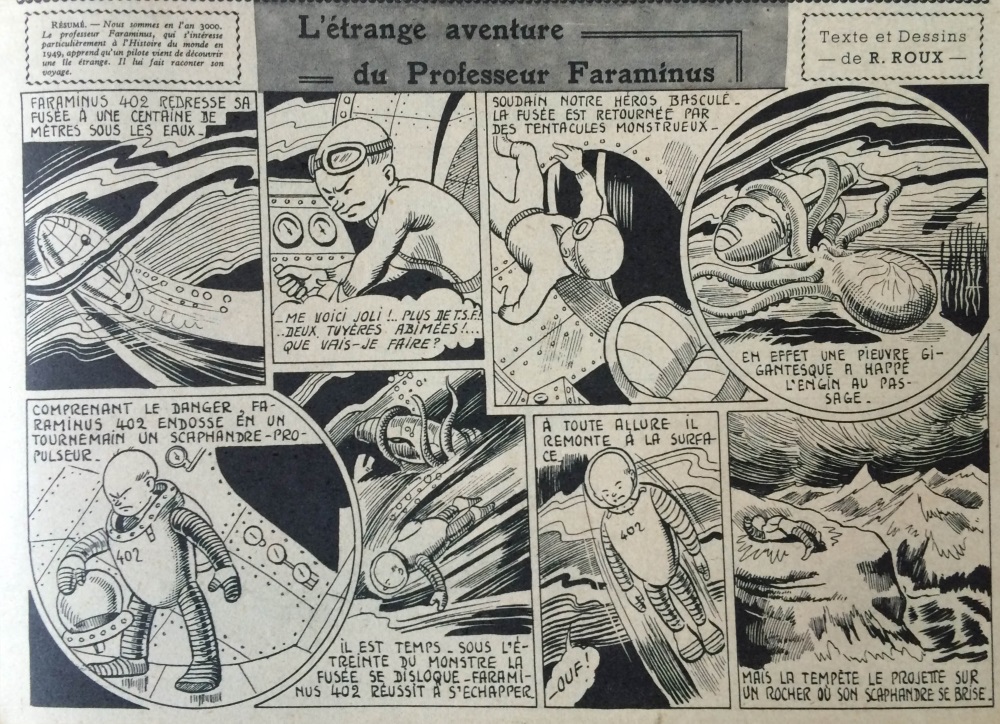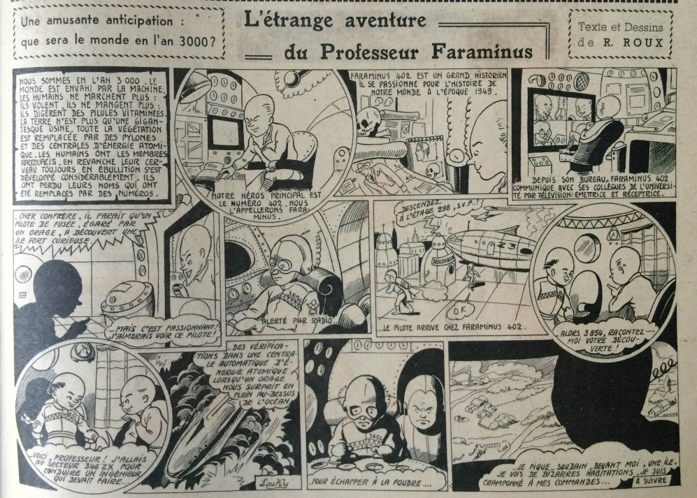 Il est à noter que Roger Roux a été un des tous premiers à écrire des histoires d’anticipation en bandes dessinées.