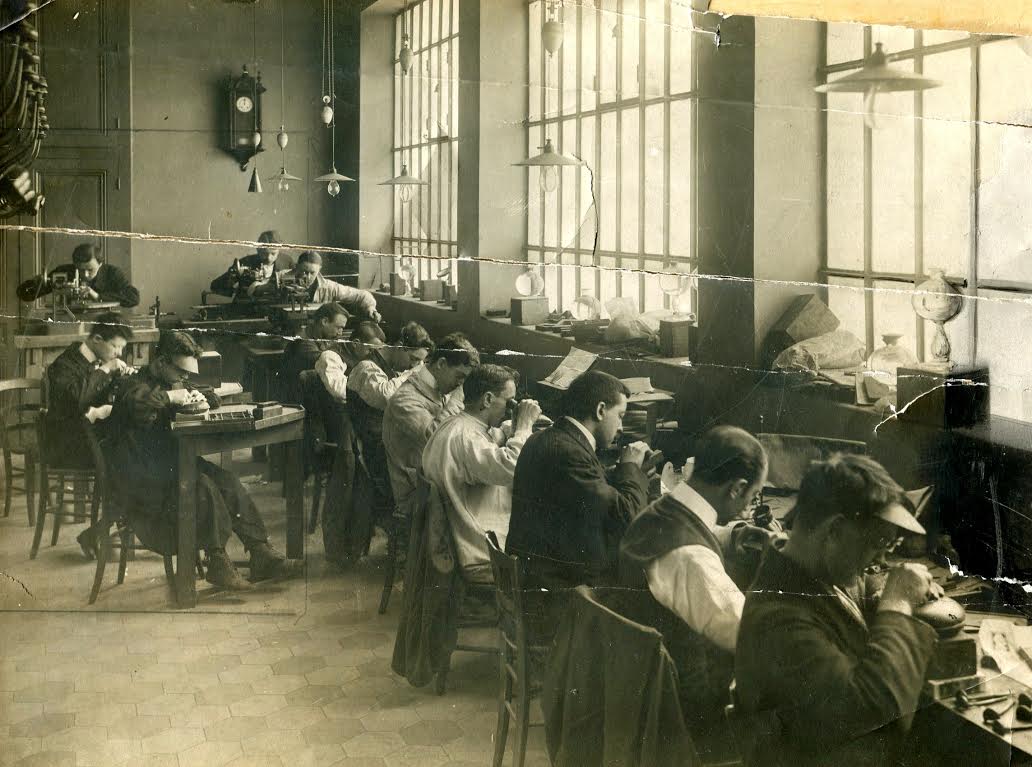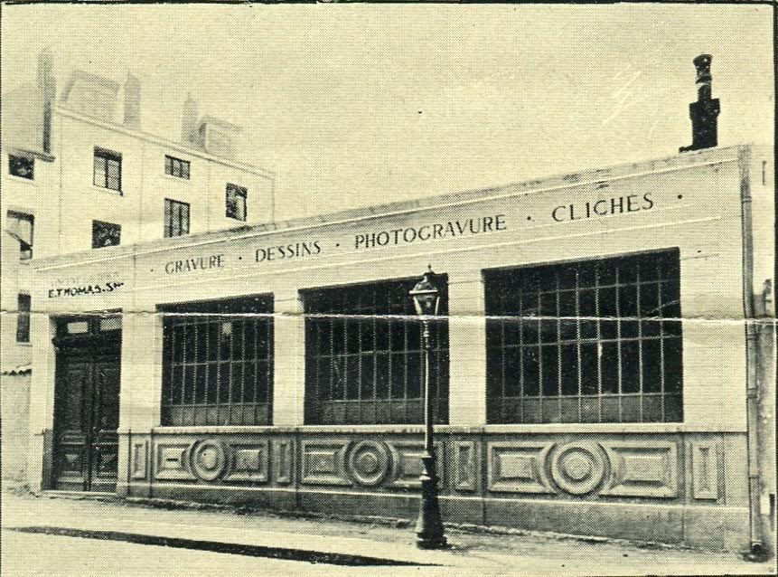 Il travaille aussi un temps en association avec son beau-frère Thomas Emile, graveur sur bois dont on voit l’atelier en photo ci-dessous, mais la collaboration ne durera pas.