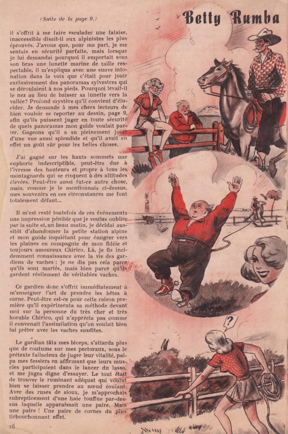 Par contre, il signera une petite bande dessinée » Moeurs des maris » dans la revue OH! n°19 d’avril 1950 sous le pseudonyme aisément reconnaissable du Professeur Rogerus Rouxo et une autre « Un grand mariage » dans la revue OH! n°21 de juin 1950.