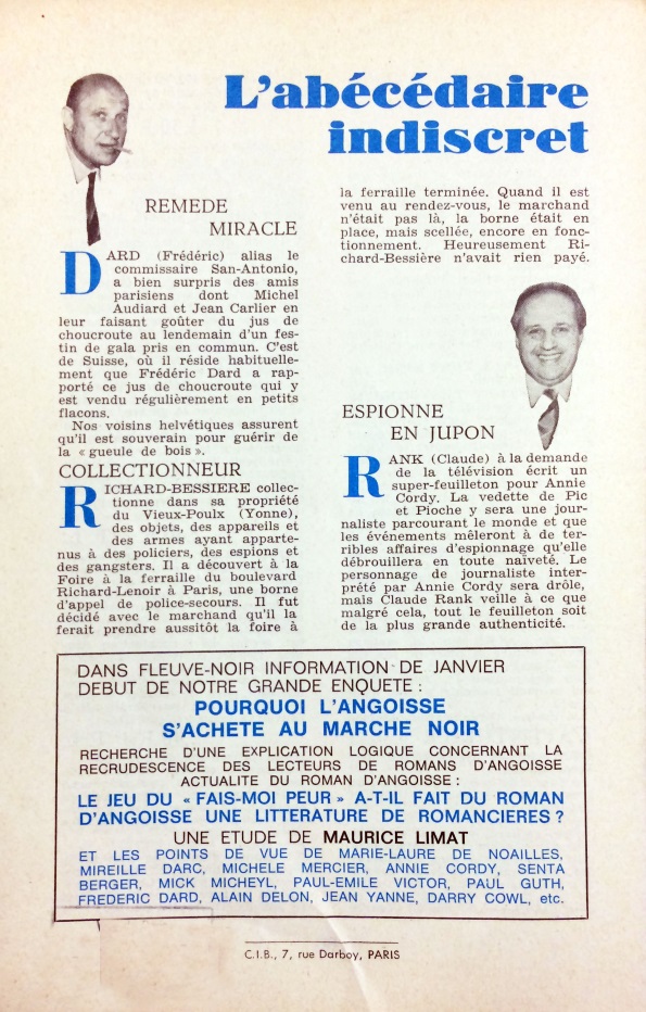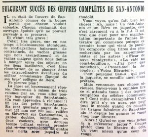 On trouve aussi un article faisant la promotion pour le lancement des Oeuvres Complètes de San-Antonio dont le premier tome, tiré à 100 000 exemplaires vient d’être mis en vente.