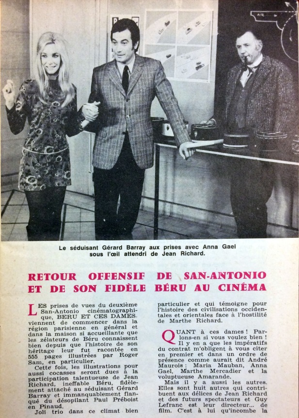 Ce numéro dont la première de couverture est illustrée par la photographie de Frédéric Dard en compagnie de Jean Richard contient un article avec photos sur le film Béru et ces dames réalisé par Guy Lefranc et qui sortira sur les écrans le 22 octobre 1968.