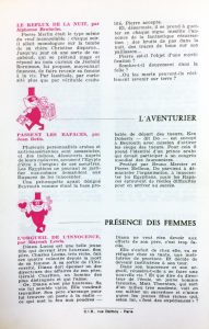 On trouve aussi dans ce numéro la présentation du dernier roman de San-Antonio qui vient de paraitre et s’intitule Emballage cadeau dont l’action se passe à Miami comme l’indique la mappemonde de l’actualité romanesque de février 1972.
