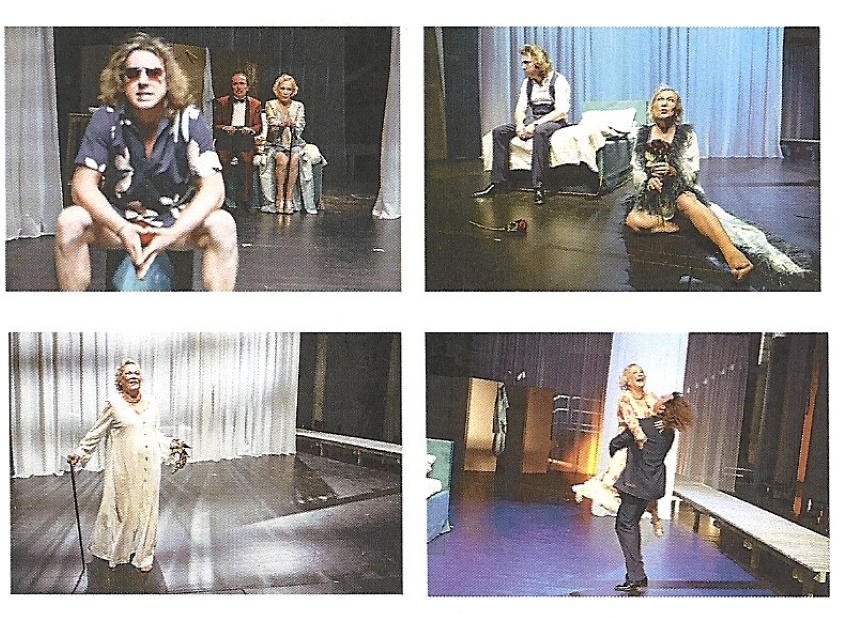 Au fur et à mesure que le spectacle avance, l’espace se réduit,se resserre autour de l’espace/cabine de Lady M. Les deux cabines sur les côtés disparaissent. Celle de Pompilius d’abord(le personnage se suicide par dépit amoureux) la cabine s’éteint.L’espace de Lambert ensuite (le personnage quitte son espace et rejoint celui de Lady M). Au fur et à mesure que les deux espaces masculins (Pompilius/Lambert) disparaissent, l’espace/cabine de Lady M avance jusqu’à l’avant-scène.