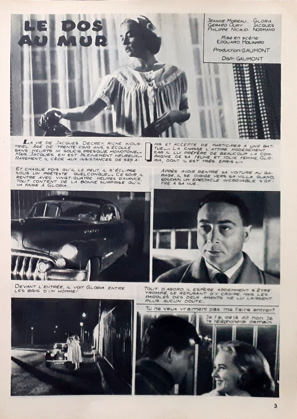 Ce numéro qui présente en 1ère de couverture Jeanne Moreau et Philippe Nicaud dans Le dos au mur contient un roman-photos complet de ce film.